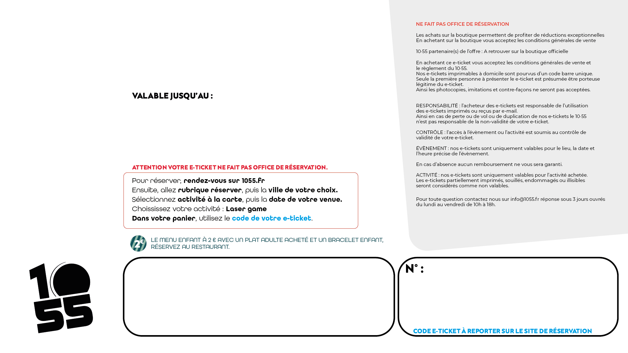 - Utilisation : Le E-ticket est valable une fois pour une personne