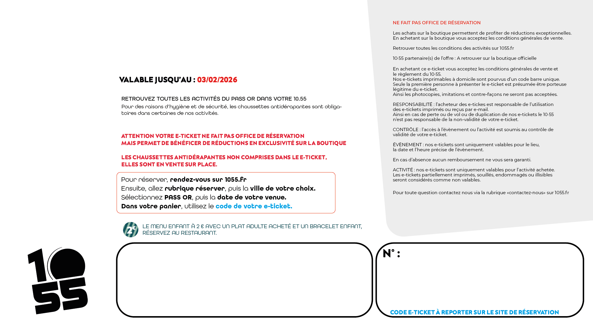 - Validité : Le e-ticket est valable jusqu’au 3 février 2026